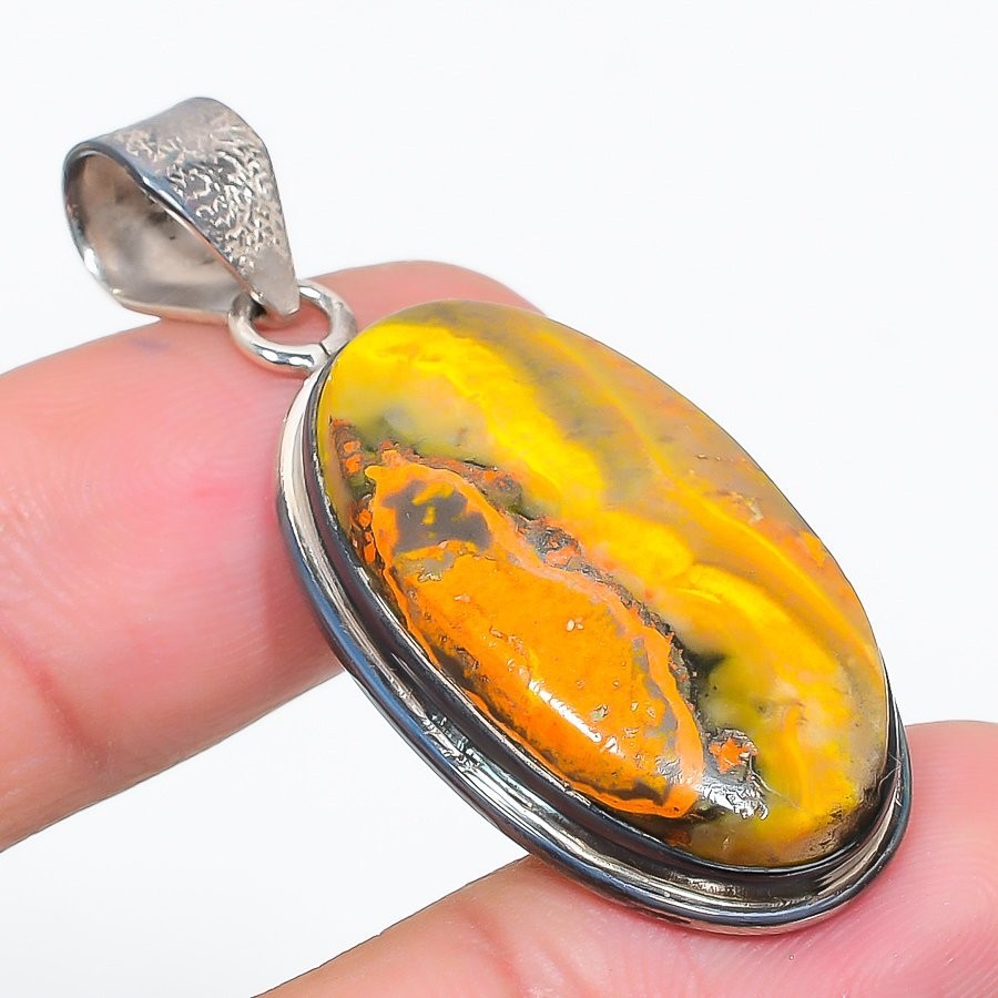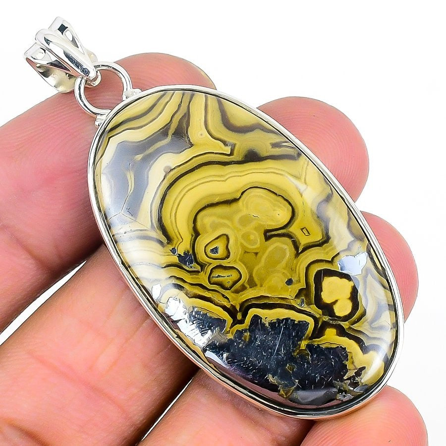 Bumblebee Jasper Gemstone Wife Engagement Trendy Boho Pendant Sterling Silver