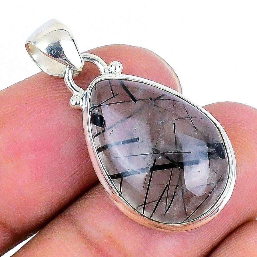 Black Rutile Gemstone Sterling Silver Ethnic Channel Set Wedding Pendant Jewelry