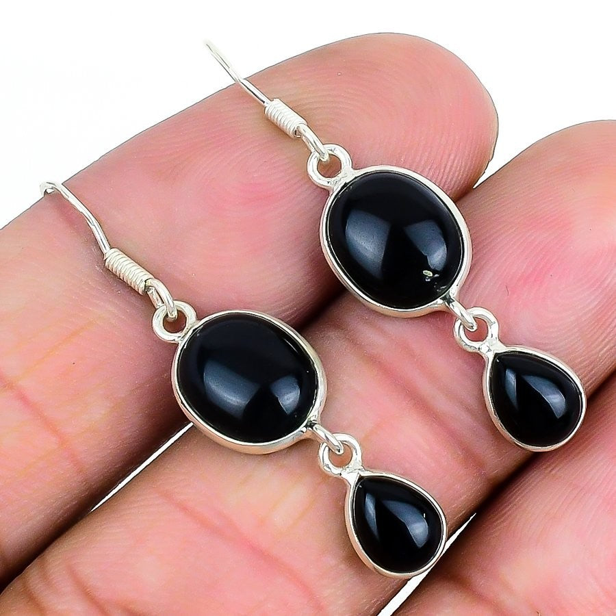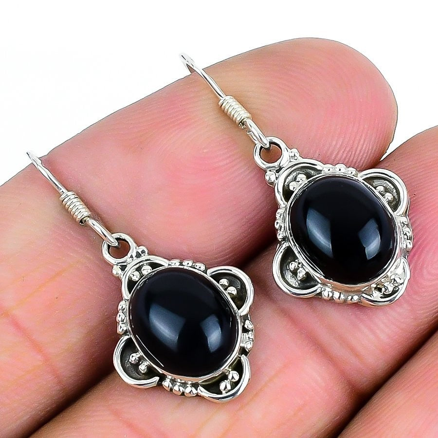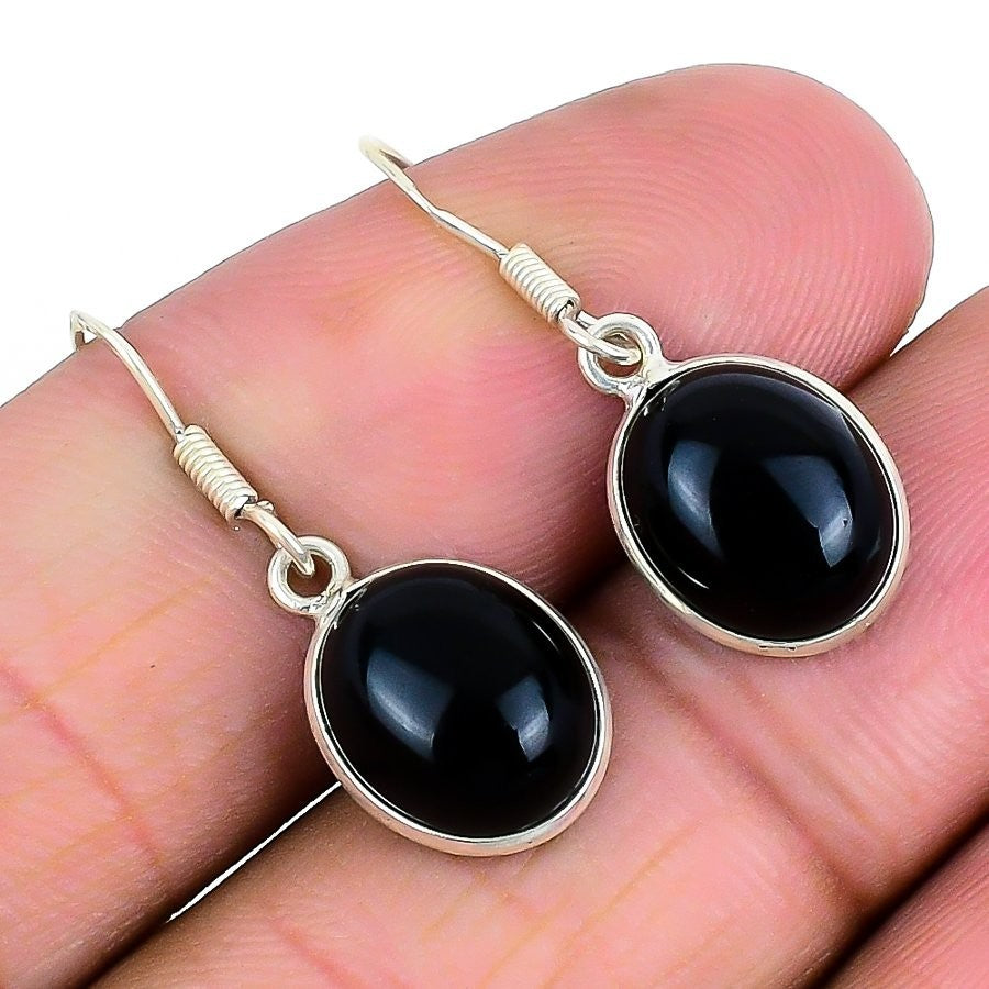 Black Onyx Gemstone 925 Sterling Silver Wife Drop Sisters Gift Earrings Jewelry