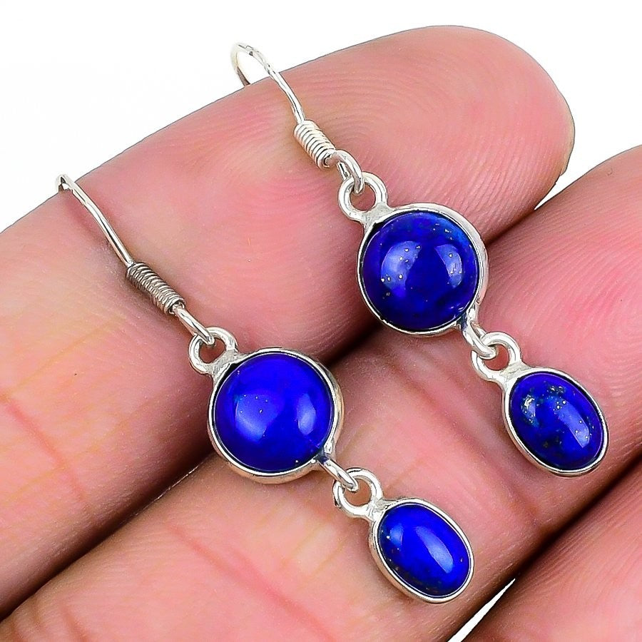 Lapis Lazuli Stone Solid Silver Wife Channel Set Drop Birthday Earrings Jewelry