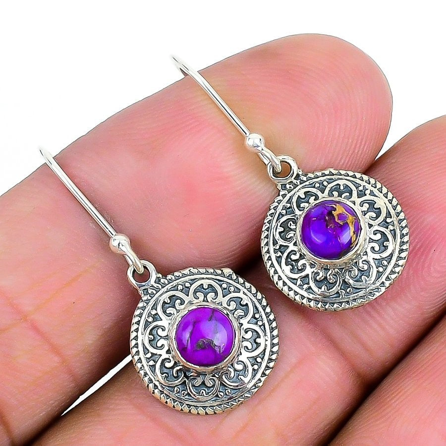 Natural Copper Purple Turquoise Sterling Silver Drop Dangle Sisters Day Earrings