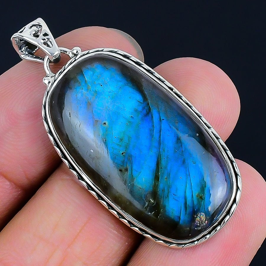 Natural Labradorite Best Friend Gift Bezel Artisan Mother Pendant Solid Silver
