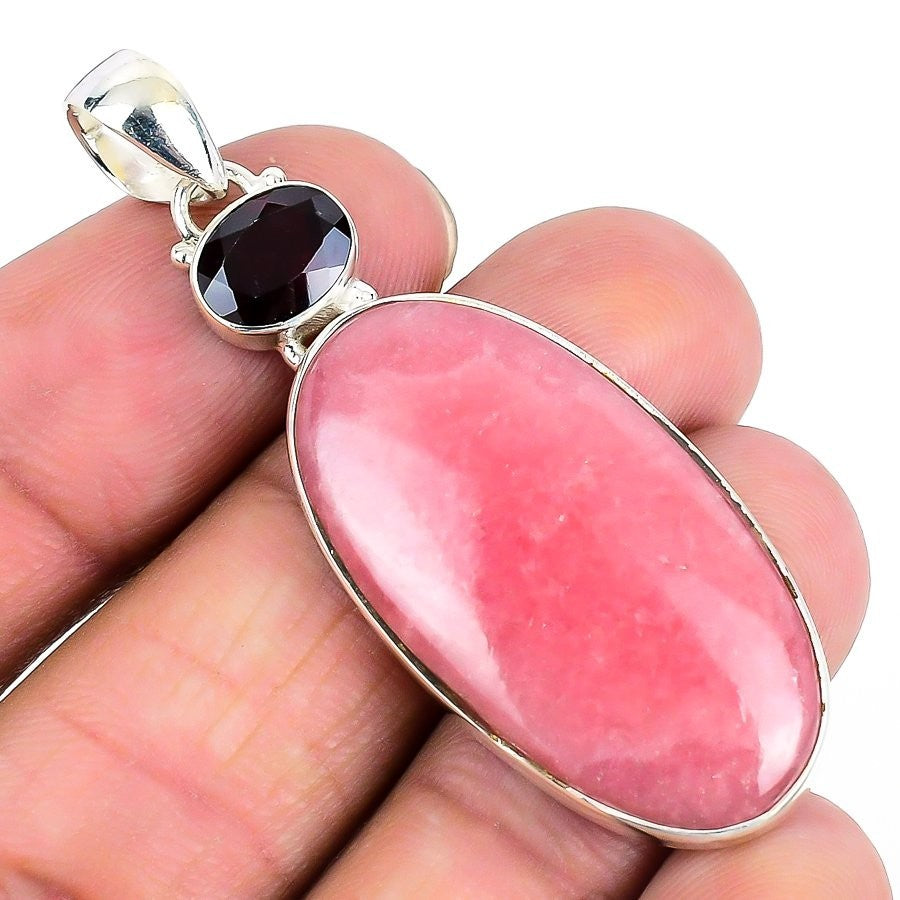 Natural Rhodonite 925Ā SolidĀ Silver Heart Chakra Friendship Day Pendant Jewelry