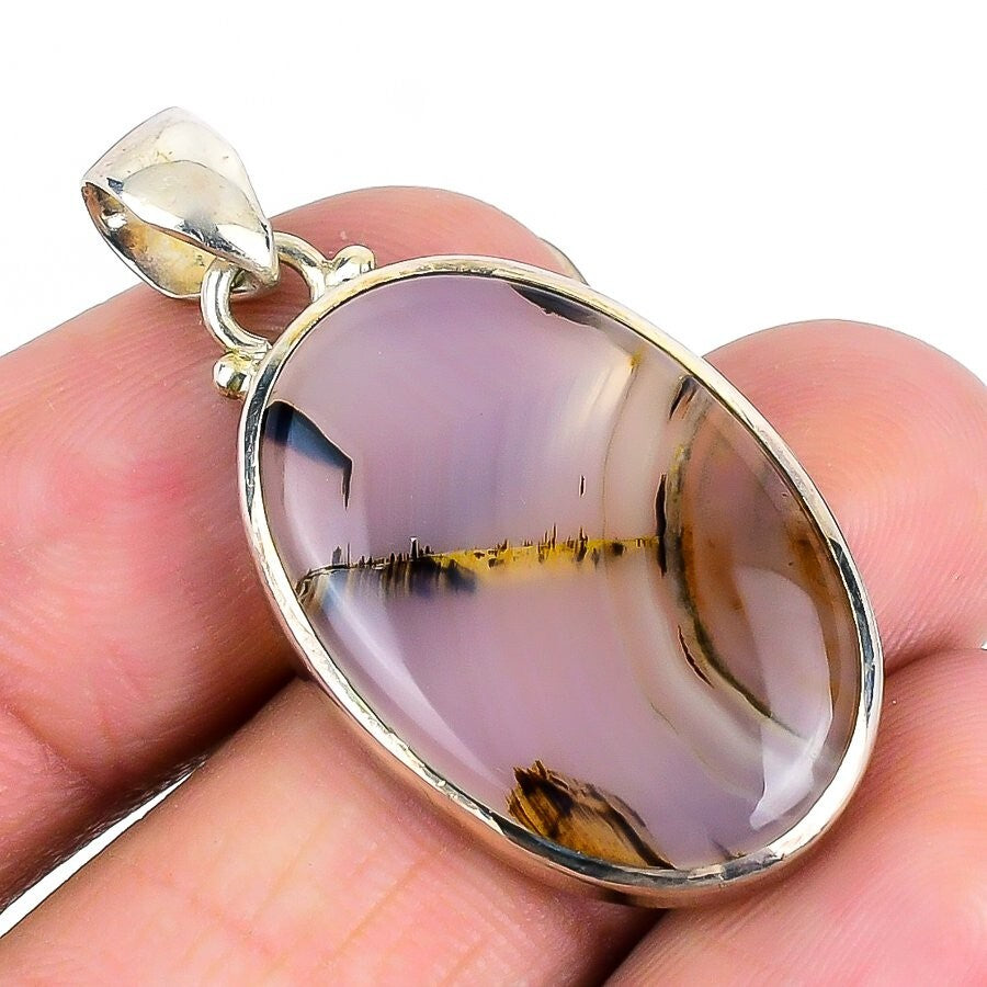 Natural Montana Agate 925 Silver Anniversary Elegant Wife Bezel Wedding Pendant