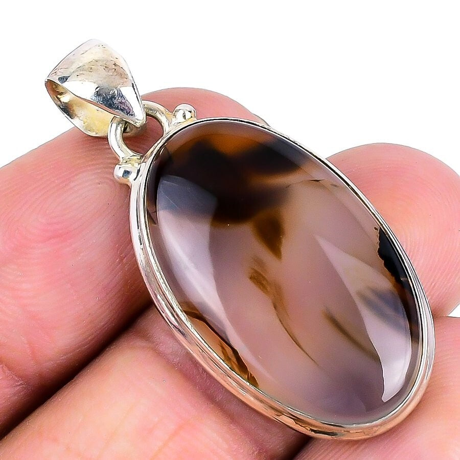 Womens day Sale Montana Agate Stone Anniversary Pendant Solid Sterling Silver