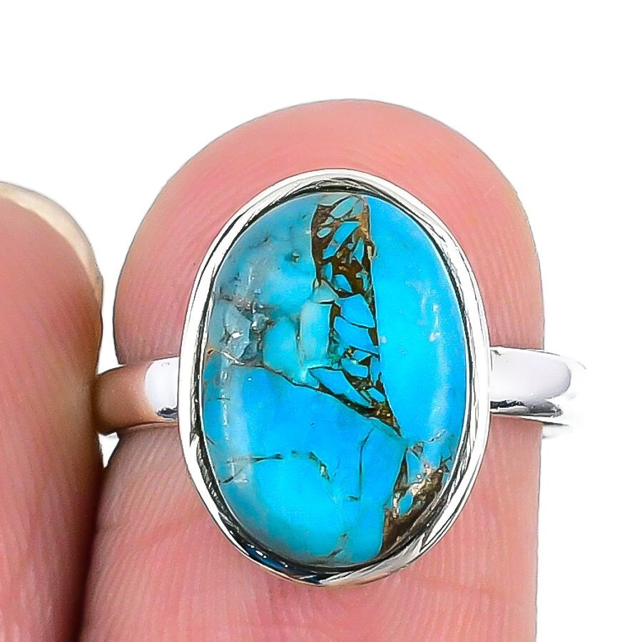 Natural Copper Blue Turquoise Statement Ring Jewelry 925 Sterling Silver US 6.5