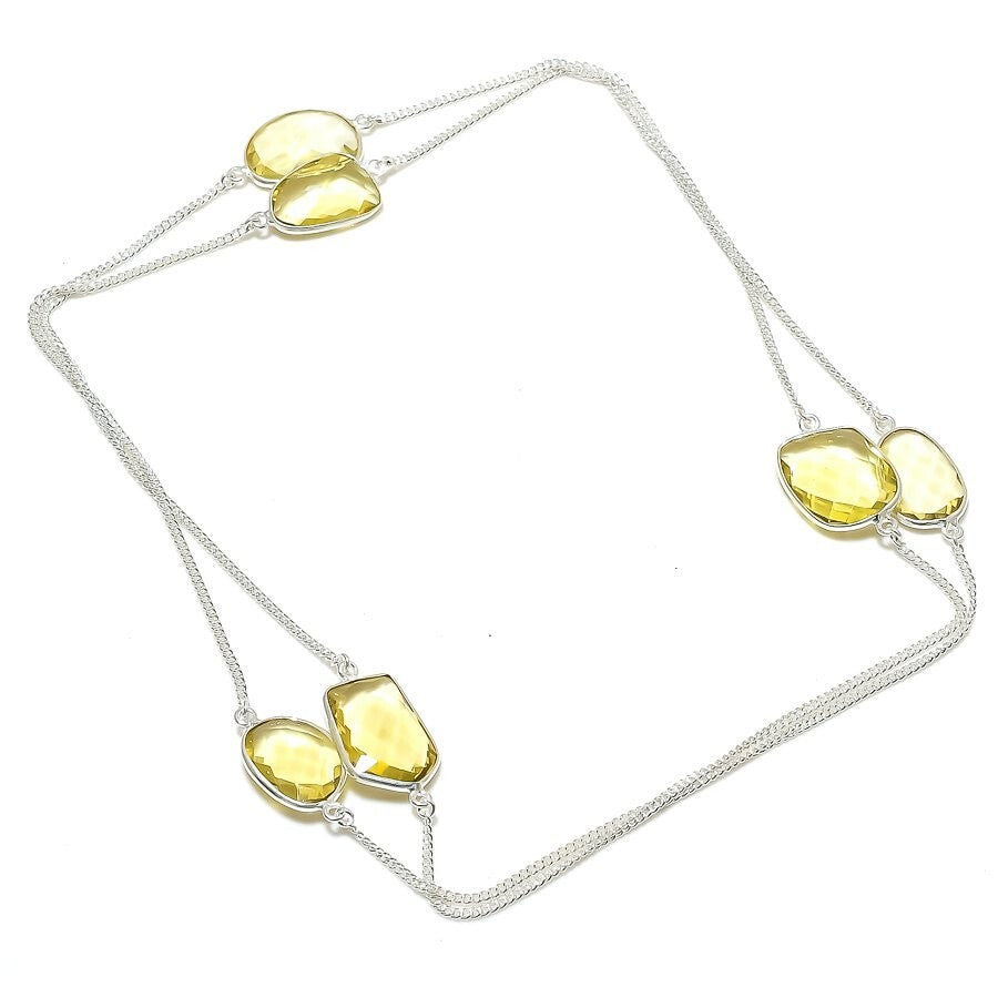 Womens day Deal Natural Citrine Solid Silver Engagement Chain Artisan Necklace
