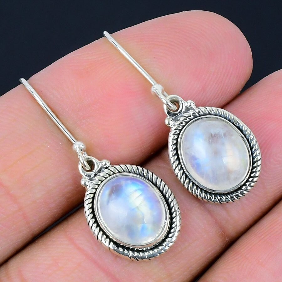 Rainbow Moonstone Gemstone Sterling Silver Trendy Hook Drop New Earrings Jewelry