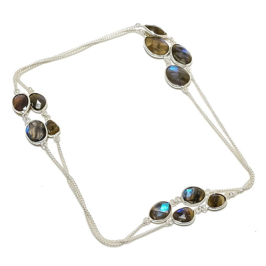 Natural Labradorite Solid Sterling Silver Chain Anniversary Womens Gift Necklace