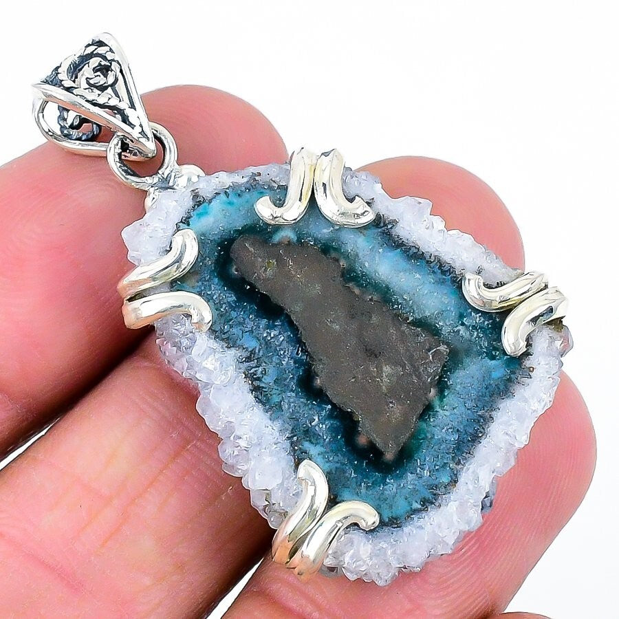 Geode Druzy Gemstone Boho Handcrafted Womens Gift Wife Pendant Sterling Silver