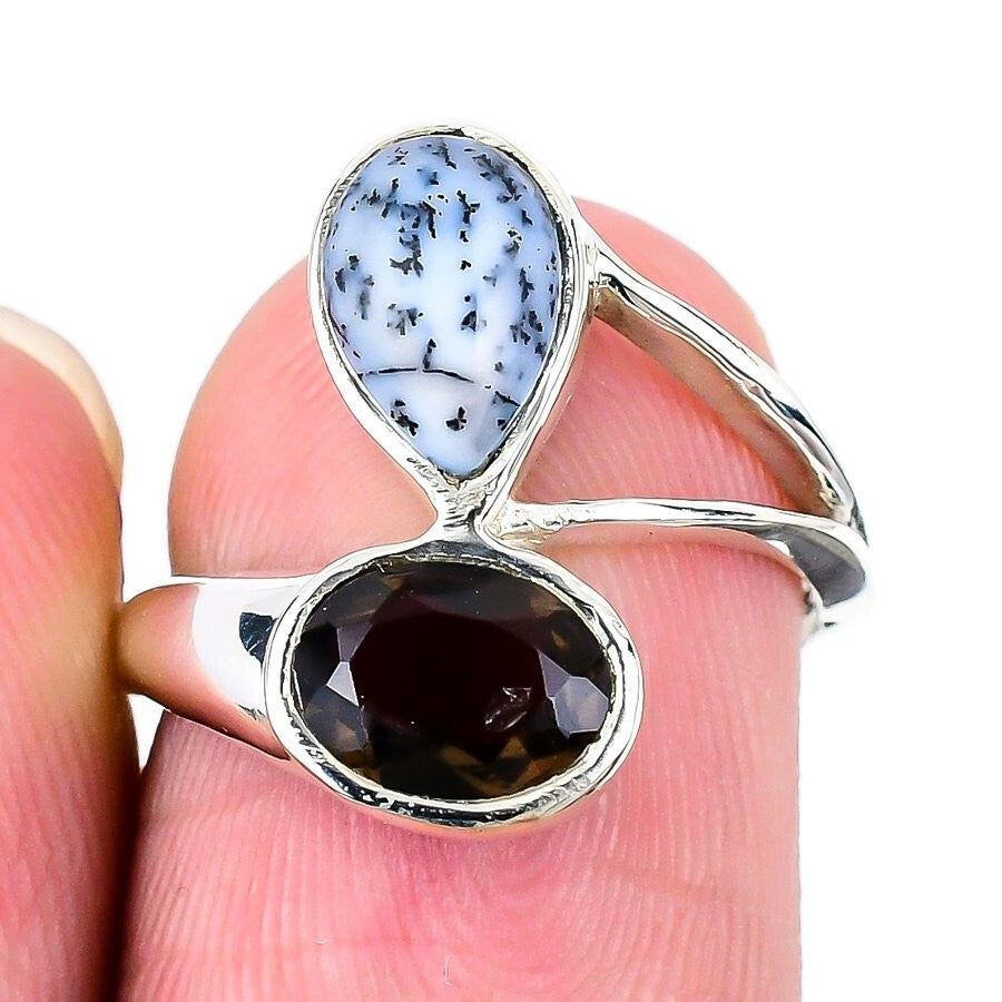 Dendrite Opal Gemstone 925 Solid Silver Wife Statement Wedding Ring Jewelry US 6