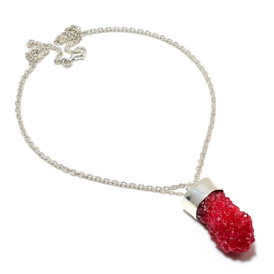 Natural Red Druzy Birthday Chain Art Deco Necklace Jewelry 925 Sterling Silver