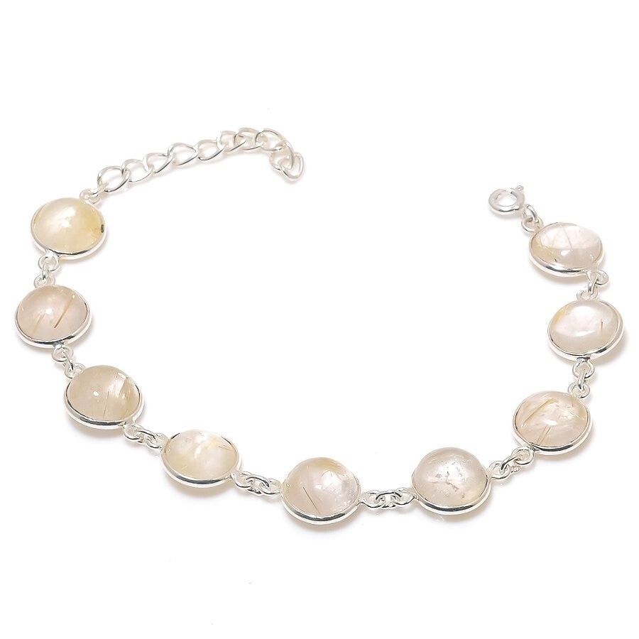 Golden Rutile Gemstone 925 Silver Art Deco Birthday Chain Womens day Bracelet