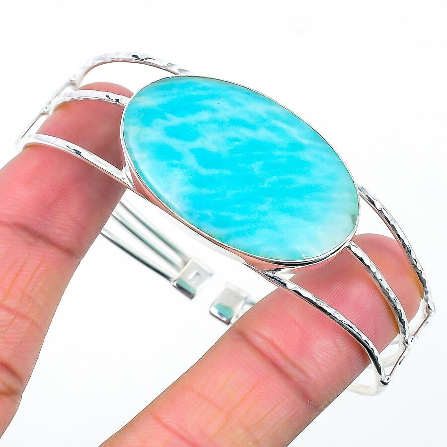 Natural Amazonite 925 Sterling Silver Mother Womens Gift Engagement Bangle Cuff