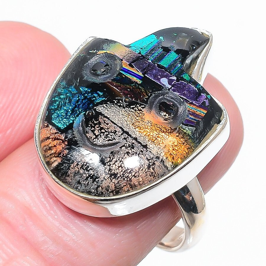 Dichoric Glass Gemstone Wife Statement Elegant Ring Jewelry Size 9 Solid Silver