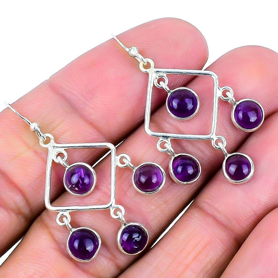 Natural Sage Amethyst Daughter Dangling Handmade Earrings Jewelry Solid Silver