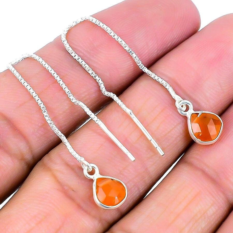 Natural Orange Carnelian Solid Silver Wedding Dangle Unique New Earrings Jewelry