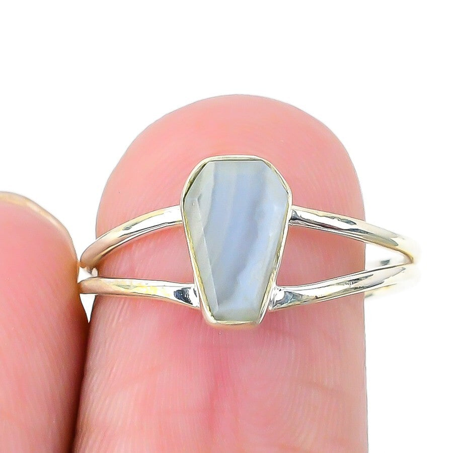 Natural Blue Lace Agate 925 Silver Boho Statement Third Eye Chakra Ring Size 8