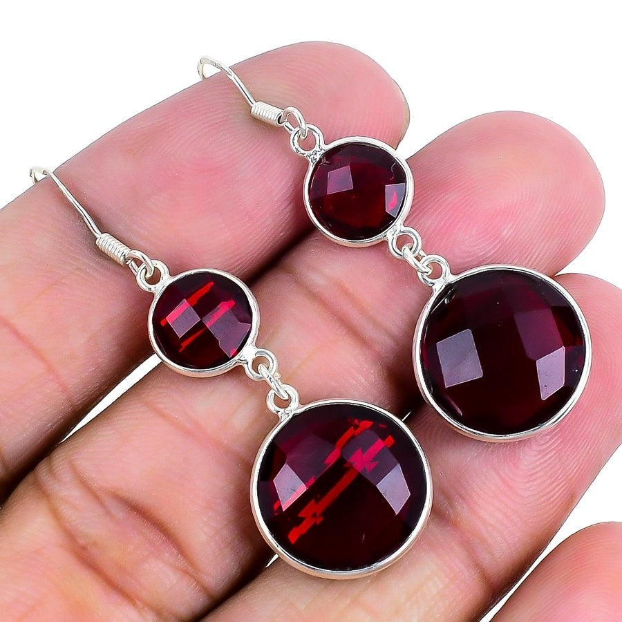Garnet Treated Gemstone Sterling Silver Wife Drop Friend Gift Ethnic Earrings