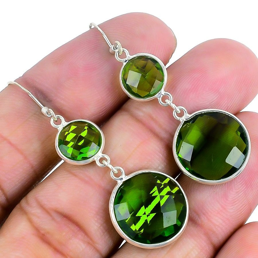 Peridot treated Stone 925 Sterling Silver Unique Sisters Day Drop Hook Earrings