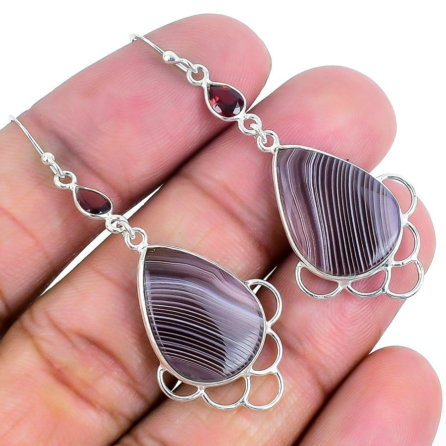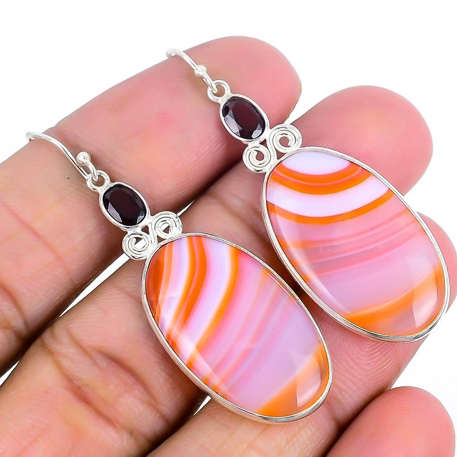 Banded Agate Gemstone Dangle Drop Birthday Wife Hook Earrings Jewelry 925 Silver