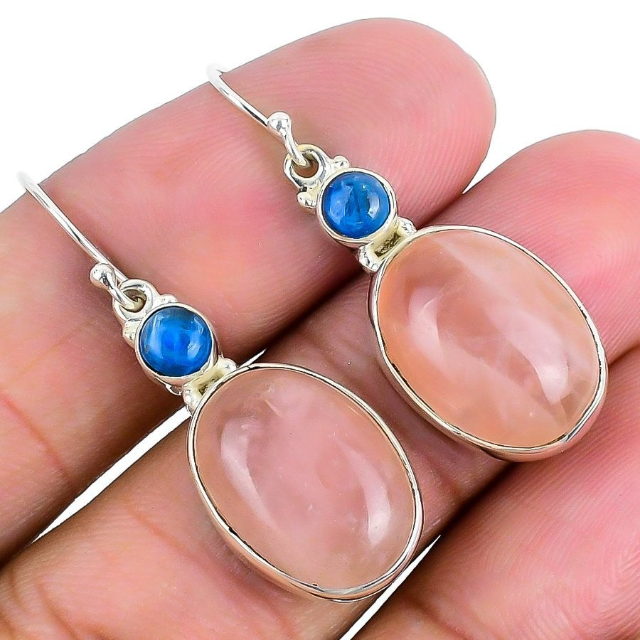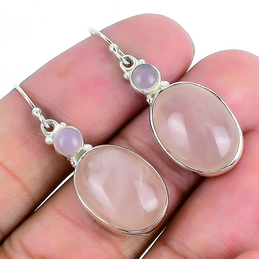 Natural Rose Quartz 925 Sterling Silver Wedding Dangling Sisters Gift Earrings