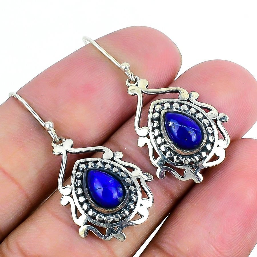 Lapis Lazuli Gemstone Daughter Drop September Birth Ethnic Earrings Solid Silver