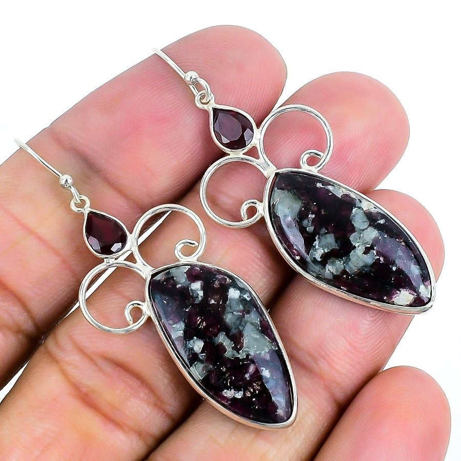 Eudialyte Gemstone 925Ā SolidĀ Silver Hook Dangling Handcrafted Wife Boho Earrings