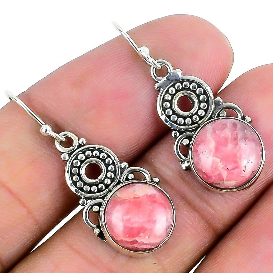 Rhodochrosite Gemstone 925 Silver Sister Hook Wedding Drop Bezel Unique Earrings