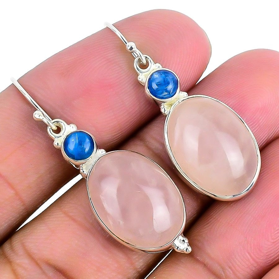 Natural Rose Quartz Solid Sterling Silver Boho Dangle Drop Wife Earrings Jewelry
