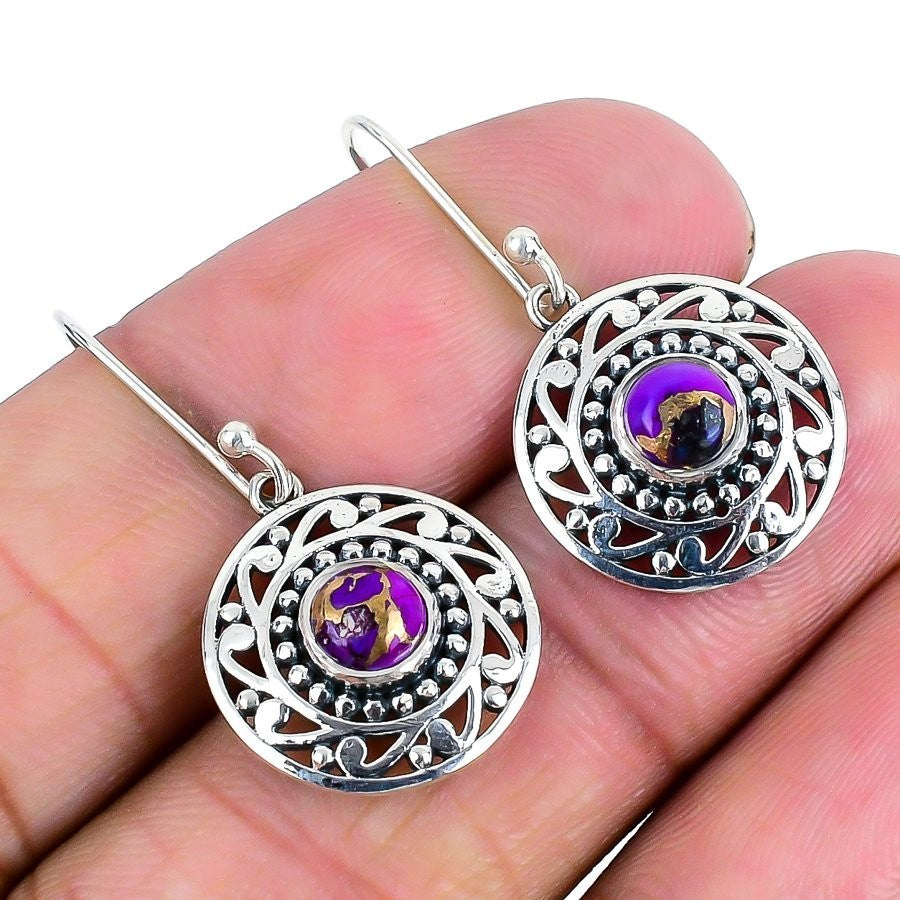 Natural Copper Purple Turquoise 925 Silver December Drop Dangle Trendy Earrings
