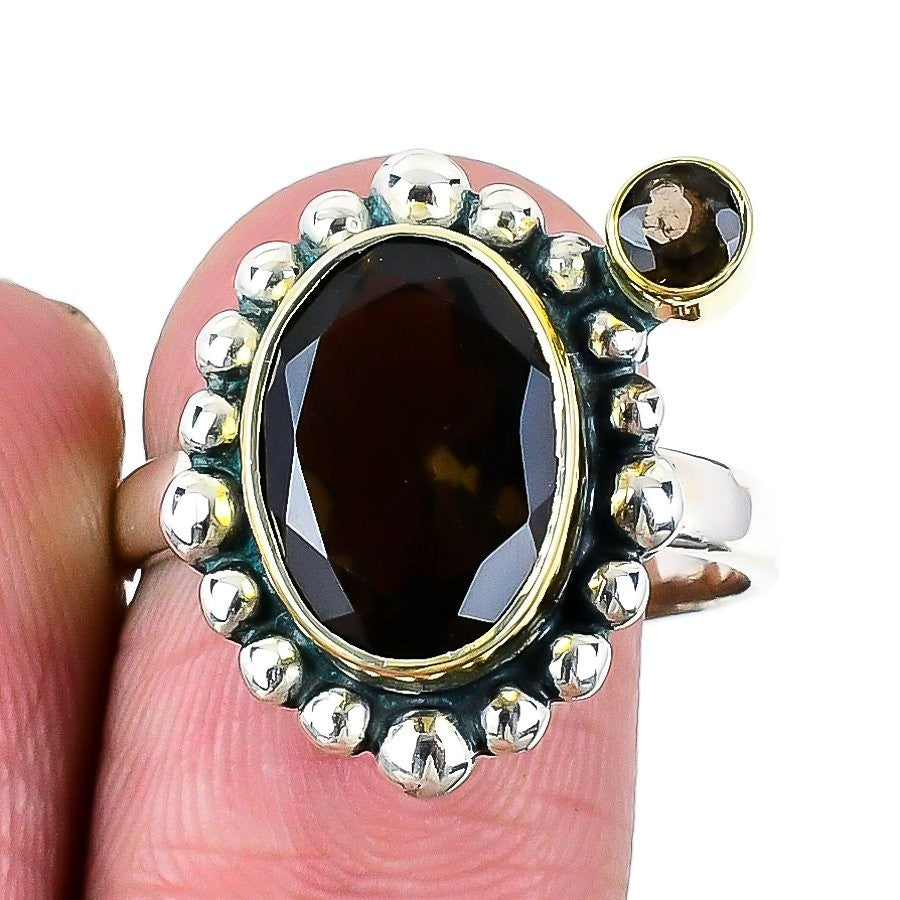 Smoky Topaz Gemstone Unique Sister Statement Birthday Ring Size 9.5 Solid Silver