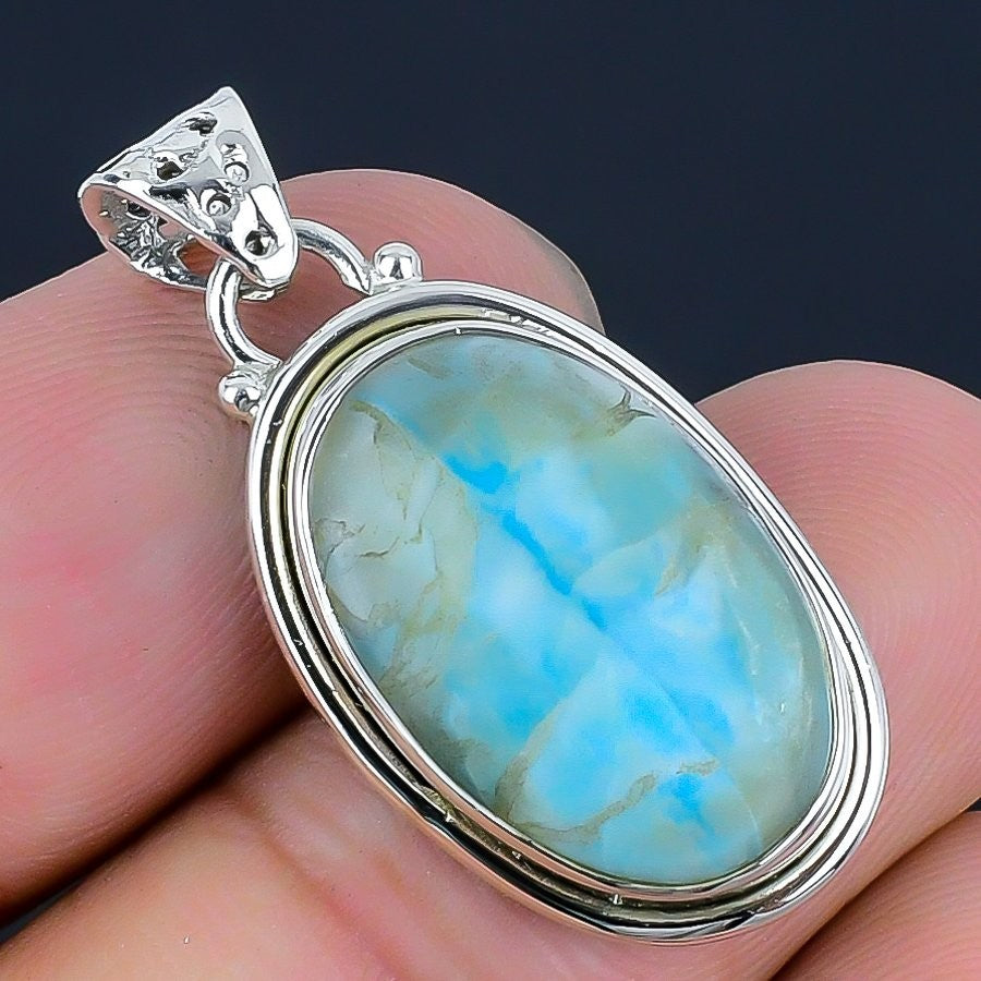 Throat Chakra Natural Larimar Solid Sterling Silver Birthday Handcrafted Pendant