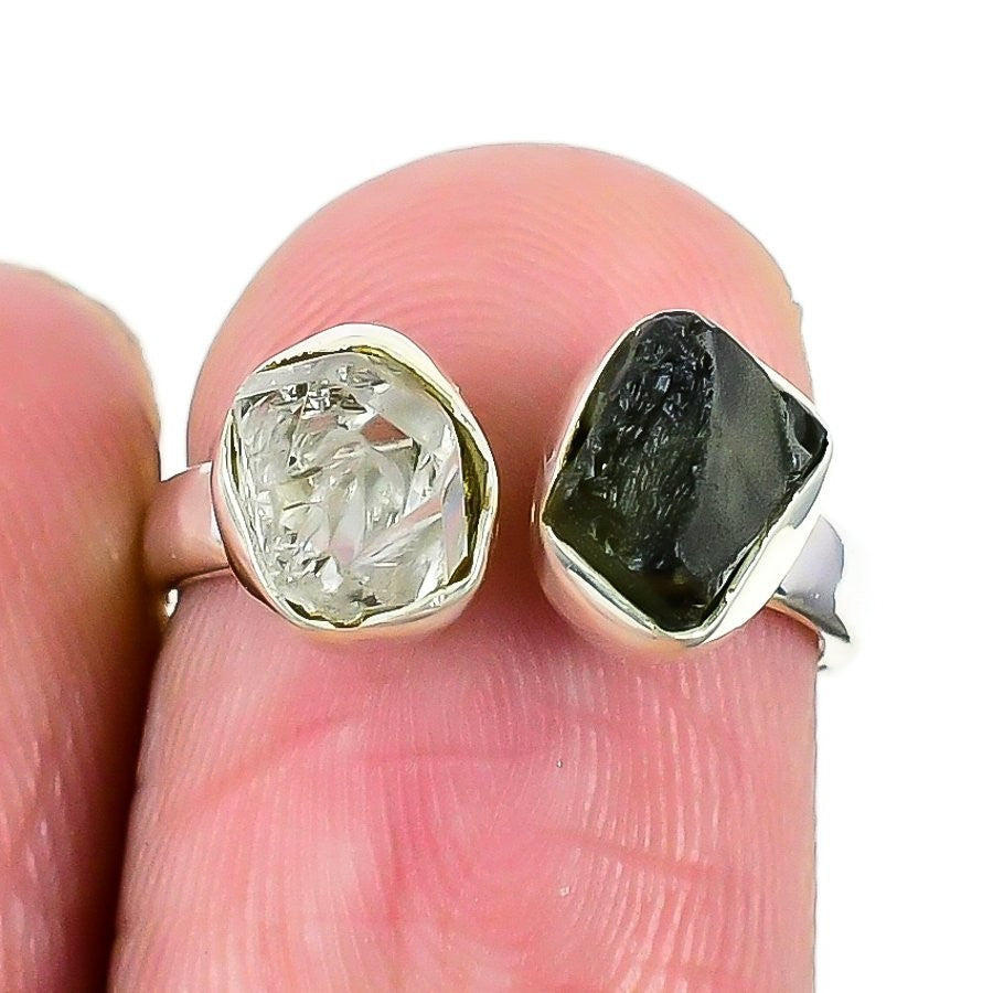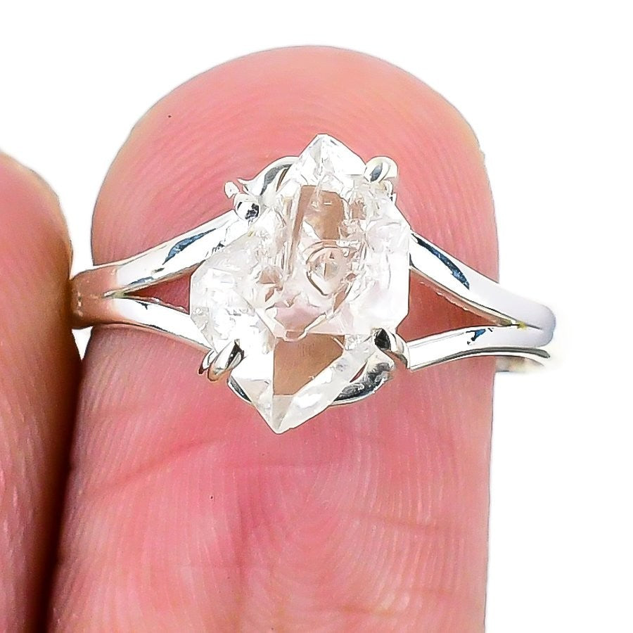 Herkimer Daimond Gemstone 925 Sterling Silver Cluster Daughter New Ring Size 7.5