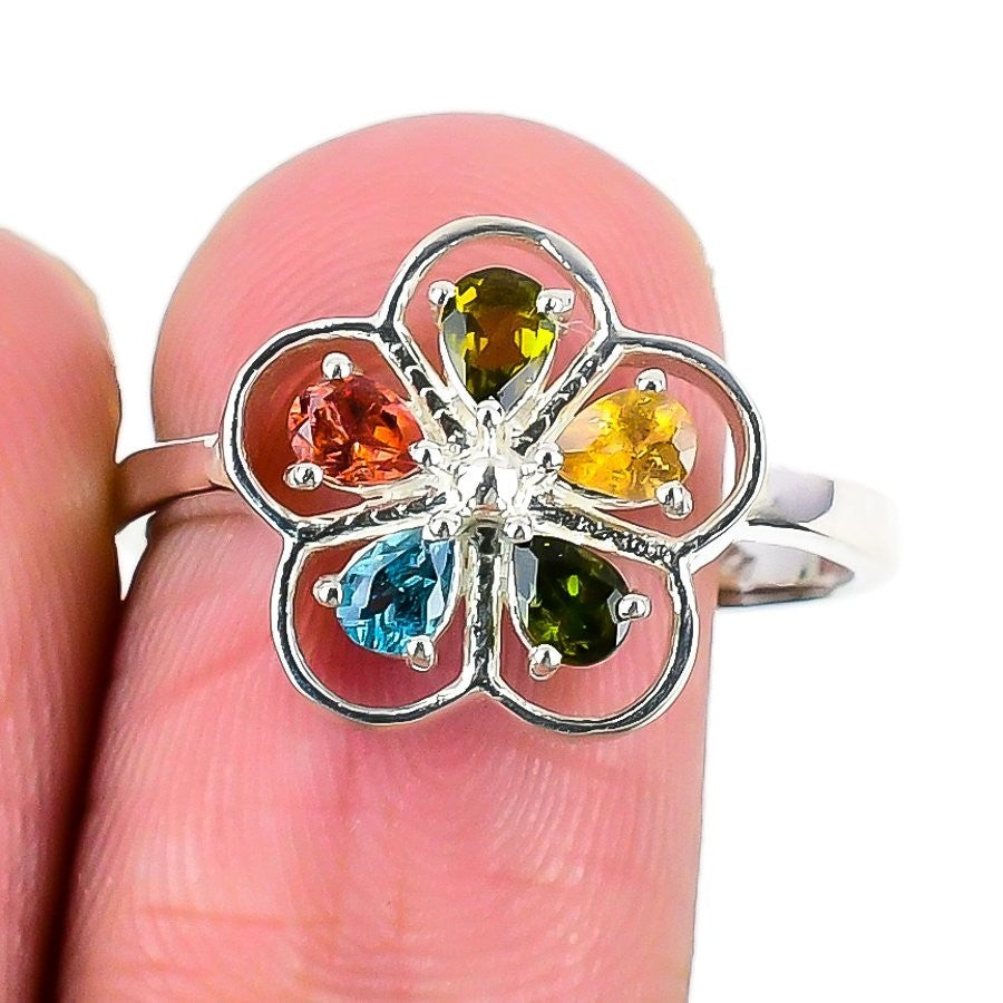 Tourmaline Stone 925 Sterling Silver October Elegant Artisan Cluster Ring Size 6