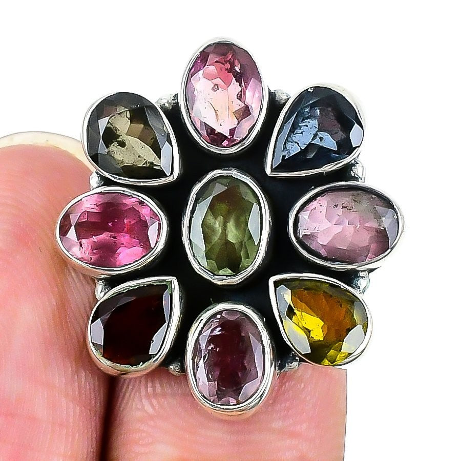 Sisters Day Sale Tourmaline Stone 925 Silver Mother Cluster Ring Jewelry Size 10