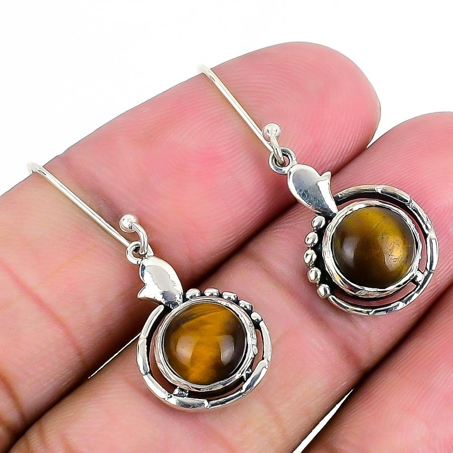 Sacral Chakra Tiger Eye Gemstone Sterling Silver Dangle Sister Wedding Earrings