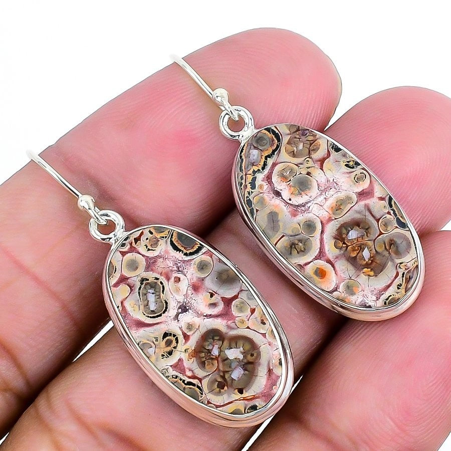 Bird Eye Jasper Stone Sterling Silver Birthday New Dangle Hook Wedding Earrings