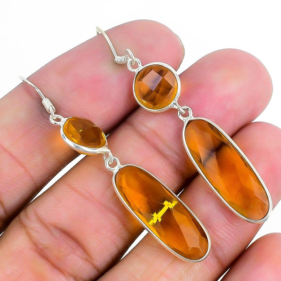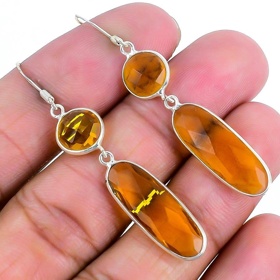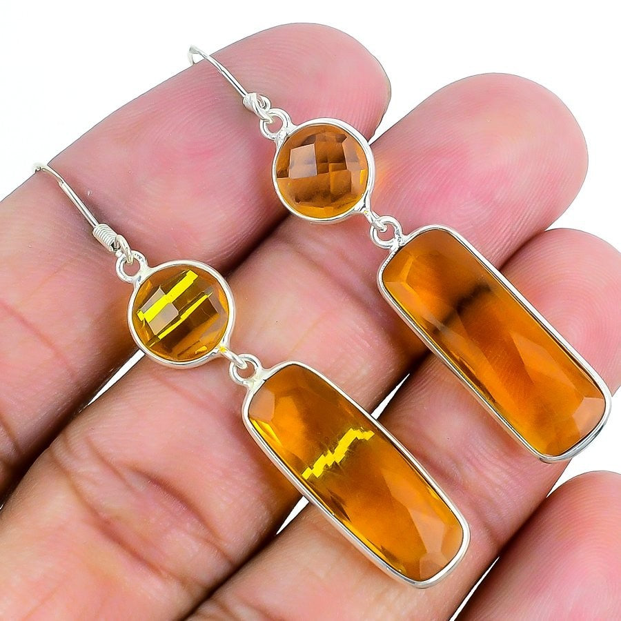 Citrine Treated Gemstone 925 Sterling Silver Dangle Drop Sisters Day Earrings