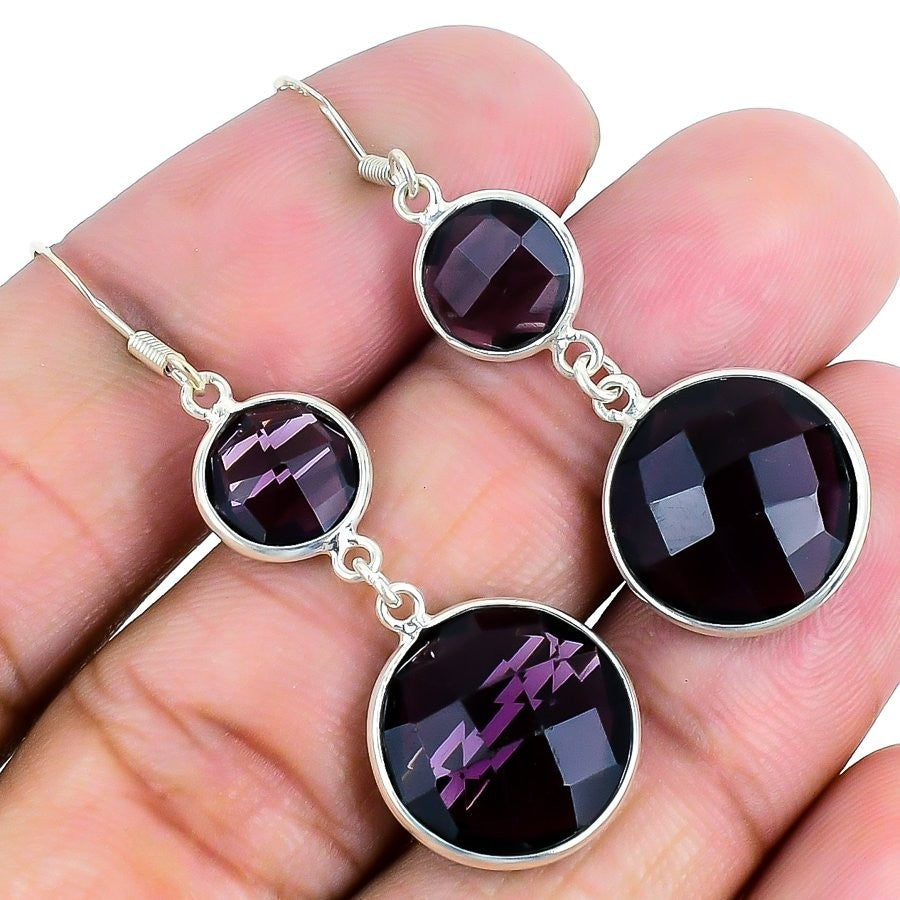 Natural Amethyst Treated 925 Silver Drop Elegant Sisters Gift Earrings Jewelry