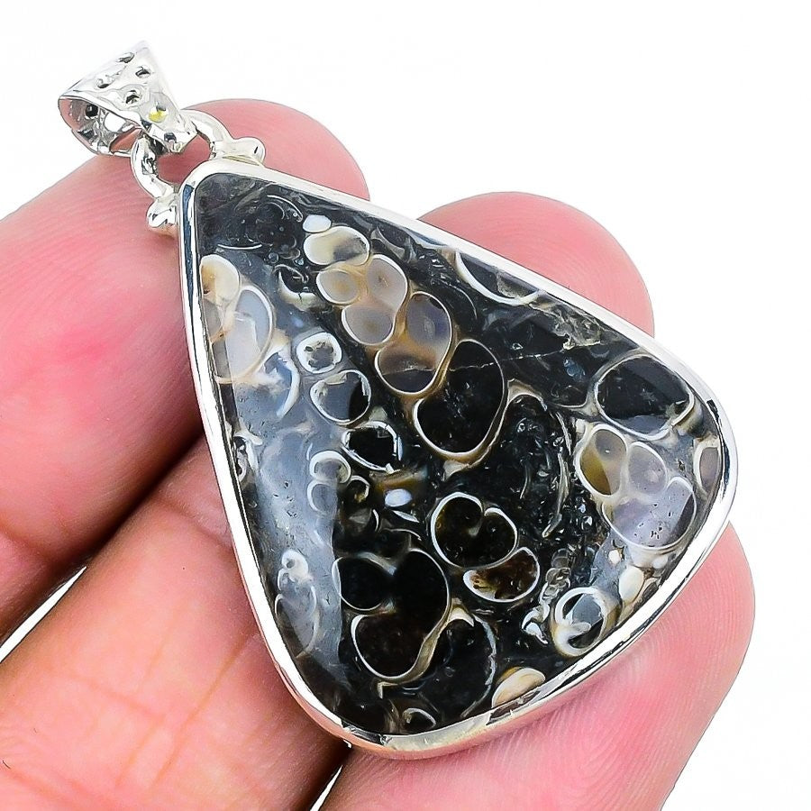 Friendship Day Sale Turritella Fossil Stone Solid Silver Ethnic Trendy Pendant