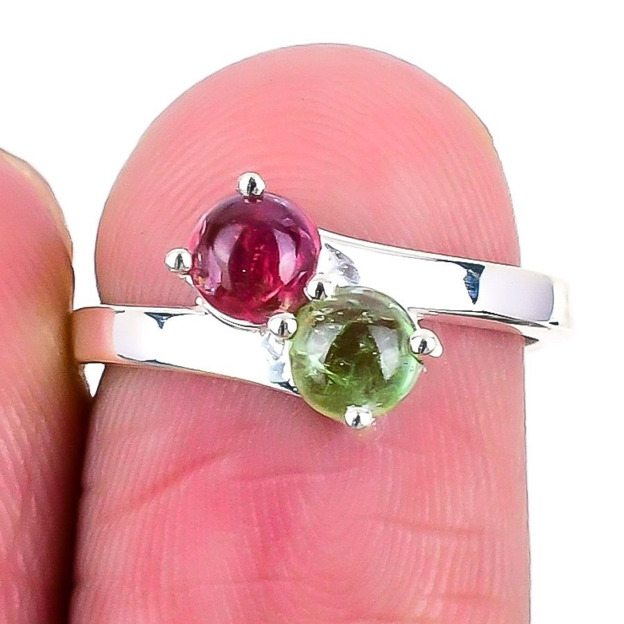 Tourmaline Gemstone Sterling Silver Cluster Ethnic Best Friend Gift Ring Size 6