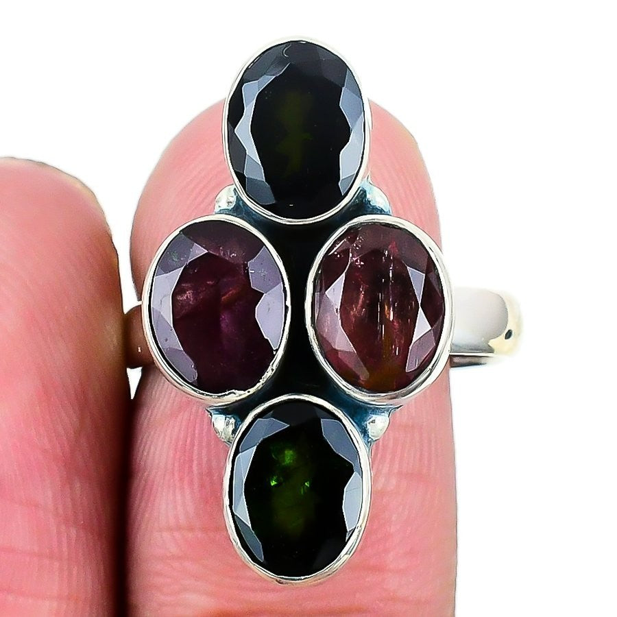 Sisters Day Deal Natural tourmaline 925Ā SolidĀ Silver Cluster Ethnic Ring Jewelry