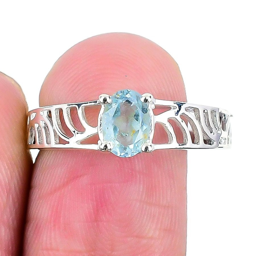 Natural Swiss Blue Topaz New Cluster Ring Jewelry Size 5.5 Solid Sterling Silver