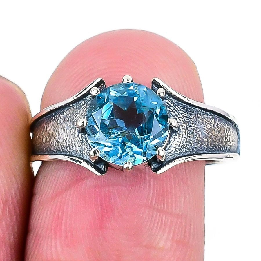 Swiss Blue Topaz Stone Wedding Wife Handmade Cluster New Ring Jewelry 925 Silver