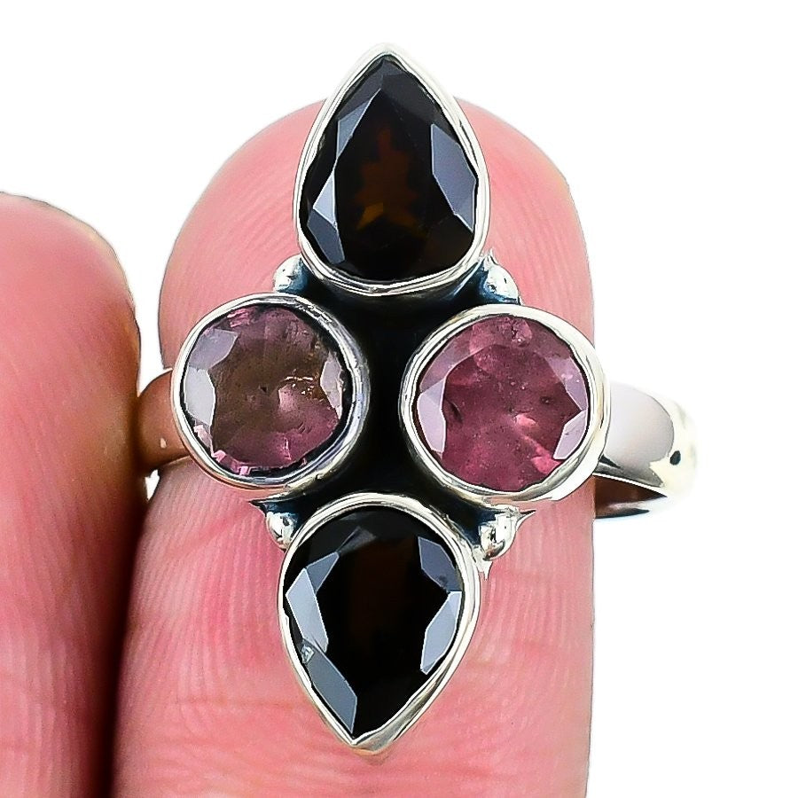 Tourmaline Gemstone Mother Cluster Sisters Day Ring Jewelry 925 Sterling Silver