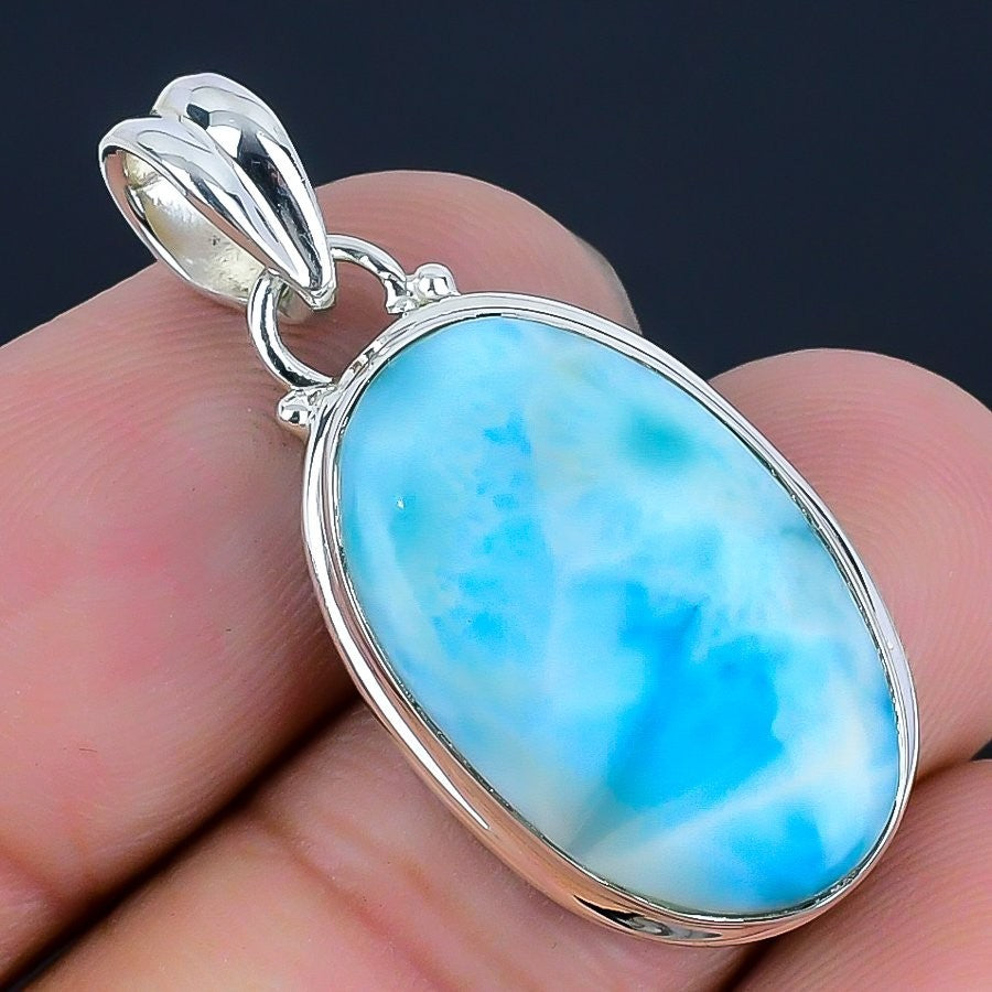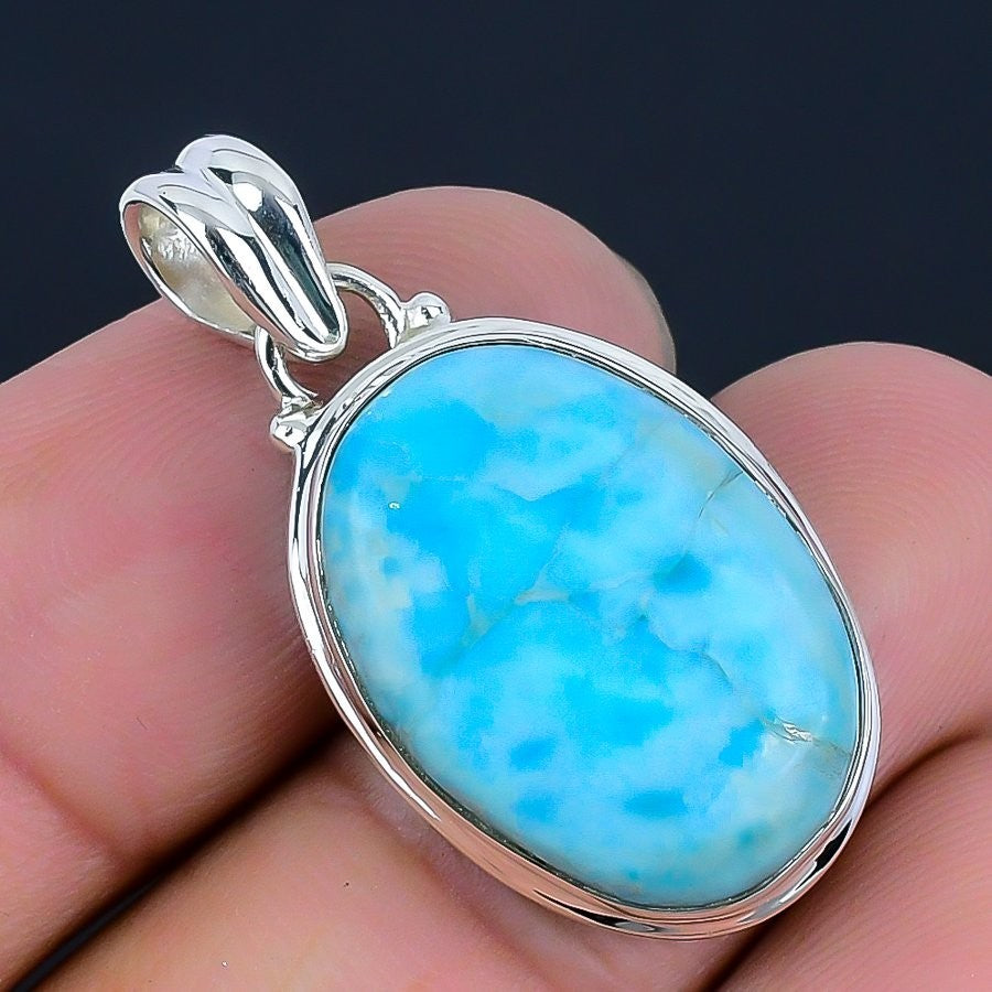 Larimar Gemstone 925 Silver Unique Sister Wedding Throat Chakra Birthday Pendant