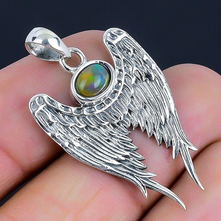 Ethiopian Opal Gemstone Daughter Bezel New Pendant Jewelry Solid Sterling Silver
