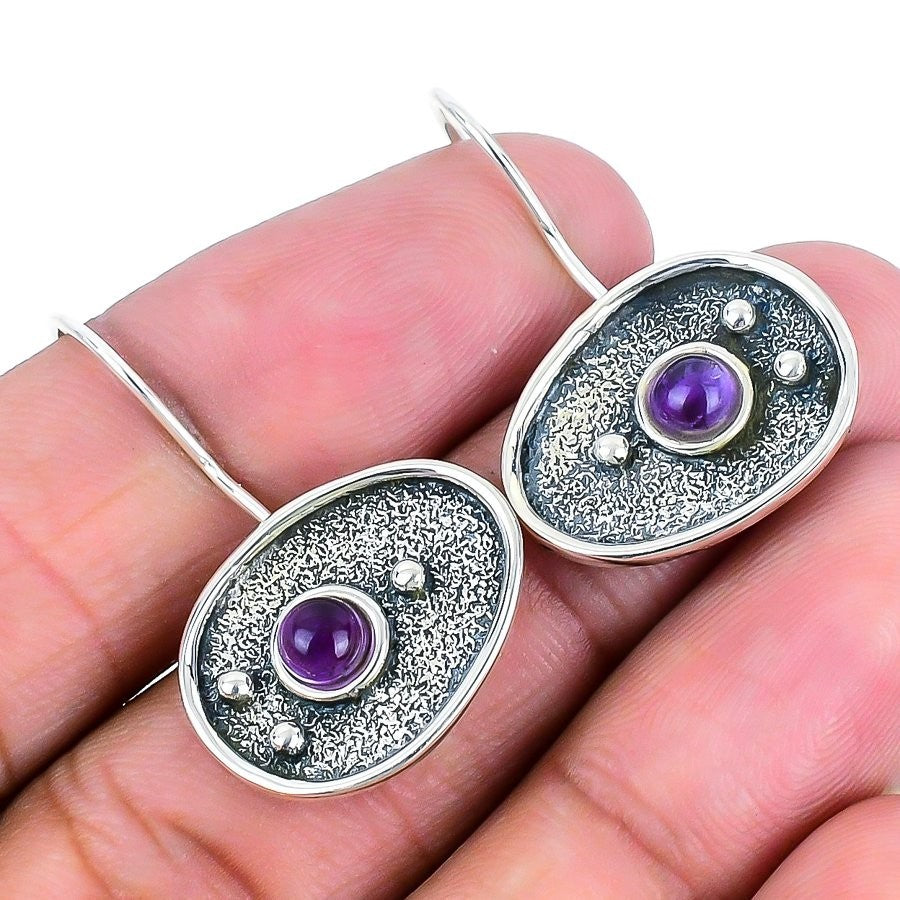 Sage Amethyst Gemstone 925 Silver Hook Engagement Dangle Mother Earrings Jewelry