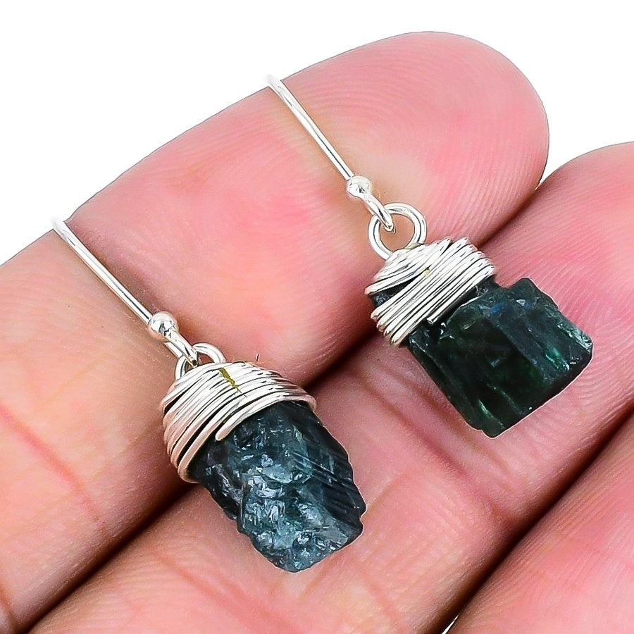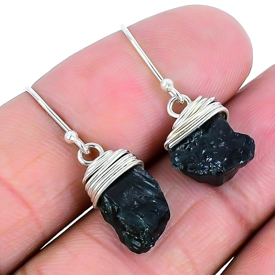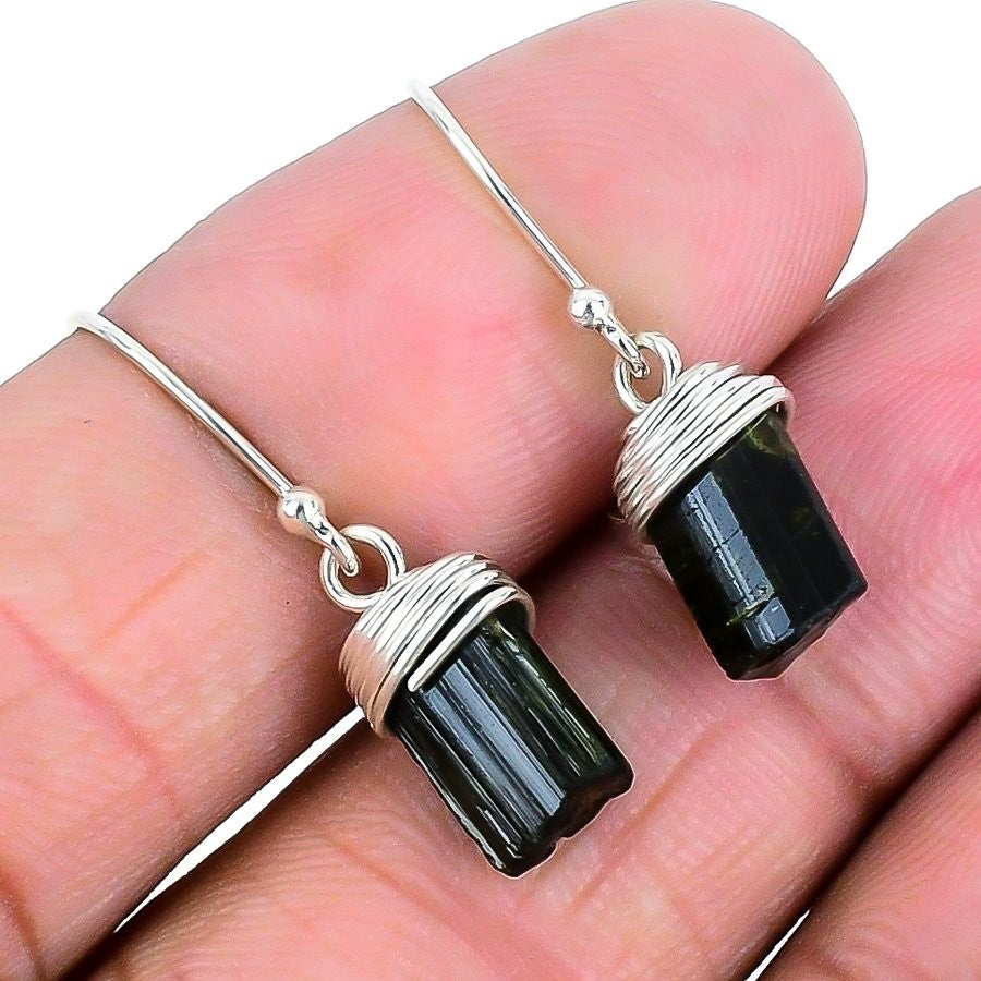 Natural Tourmaline rough Solid Sterling Silver Dangle Friend Gift New Earrings